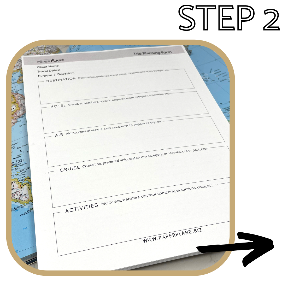 Write down your client's ideas, notes, and preferences for their upcoming trip on the Trip Planning Form.